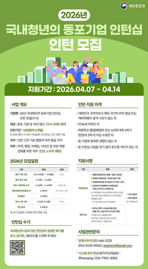 (사업명) 26년 국내청년의 동포기업 인턴십 인턴 모집(수시)