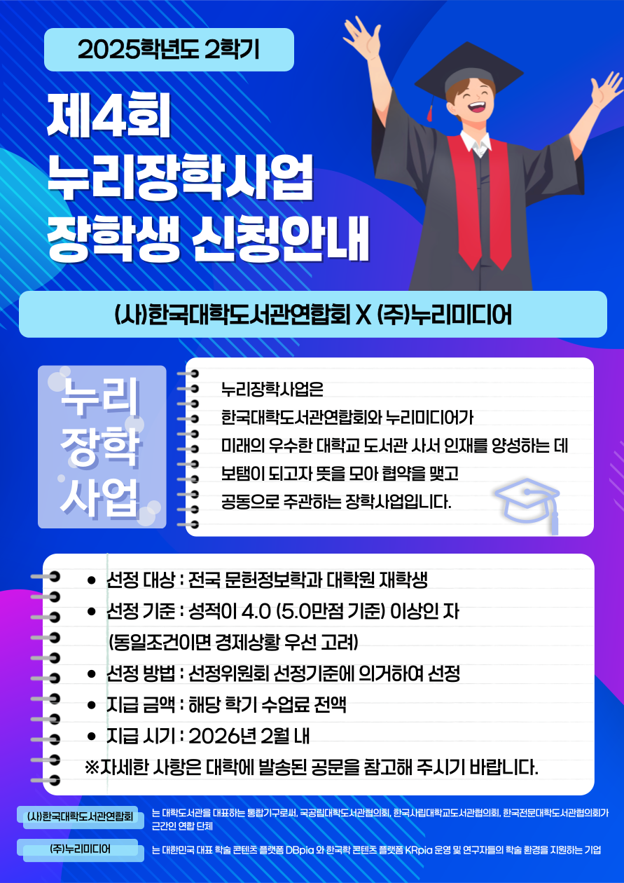 [장학] 2025년 2학기(제4차) 누리장학사업 장학생 신청 안내
