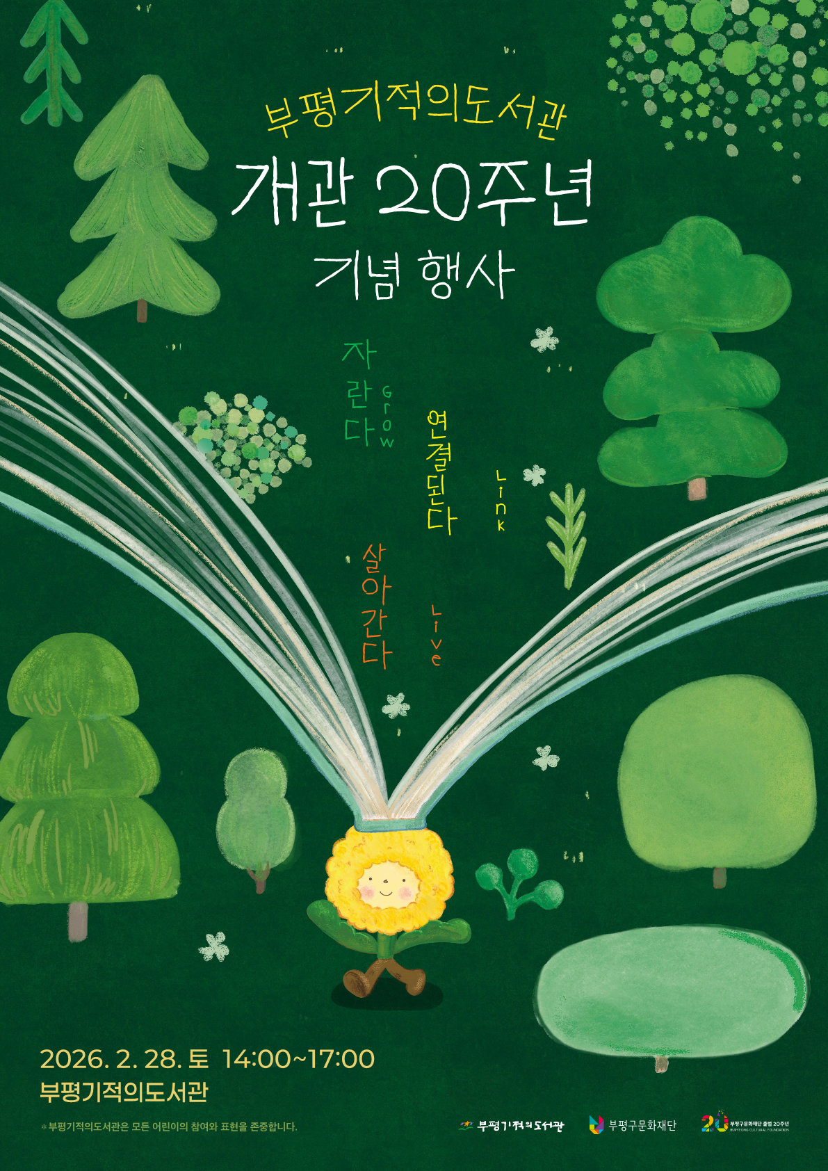- 행사명: 부평기적의도서관 개관 20주년 기념행사 「자란다, 연결된다, 살아간다(Grow, Link, Live)」